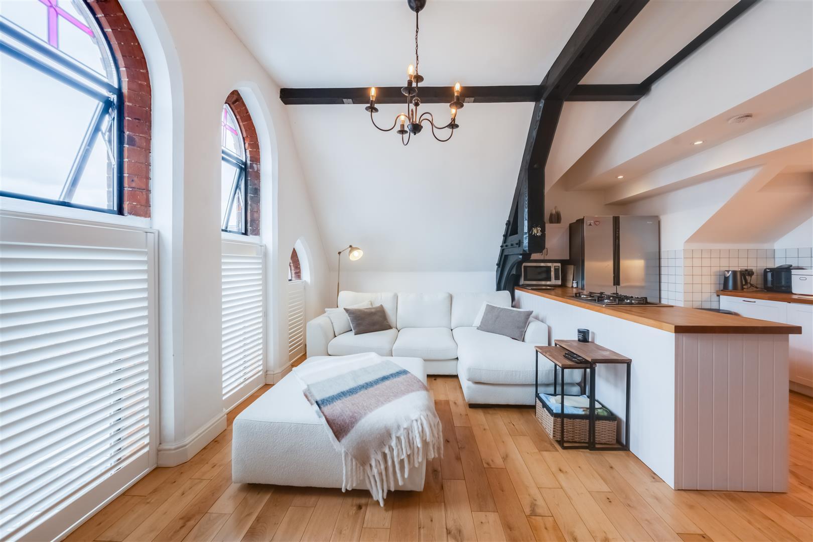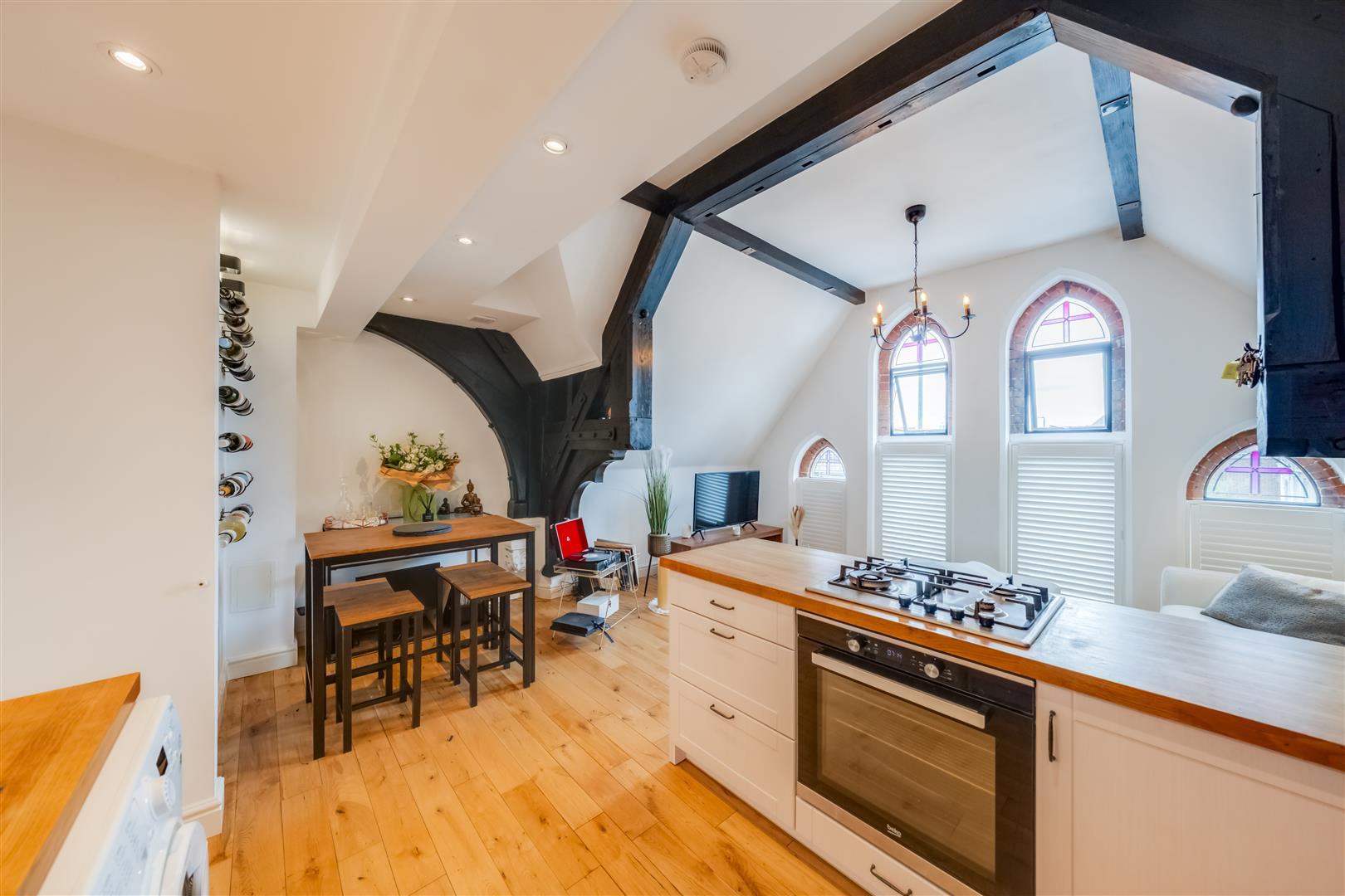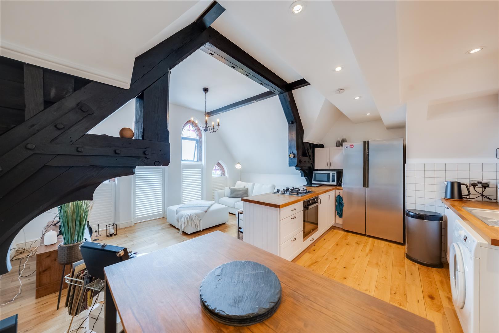 As you enter, you will be greeted by an open-plan reception room that is perfect for socialising and entertaining. The kitchen, seamlessly integrated into this space, is both modern and functional, making it a delightful area for culinary pursuits. Natural light floods the rooms, thanks to the Velux windows, enhancing the overall sense of space and warmth.