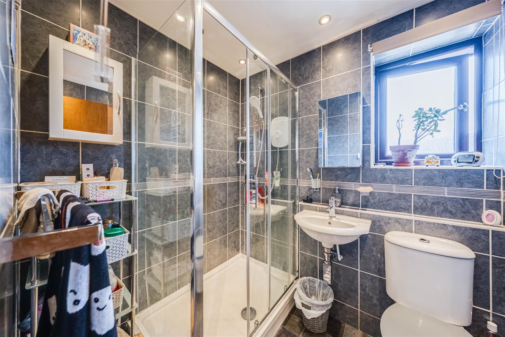 The main bedroom is a comfortable double with fitted mirrored wardrobes. Bedroom two suits a single bed, storage and a desk, and works well as a study if required. A fully tiled shower room includes a wide enclosure, wash hand basin and WC, enhanced by a window for natural ventilation and recessed downlights. One of the hallway cupboards provides additional hanging space. Outside, the property comes with one allocated parking bay, and visitor bays are available within the development.