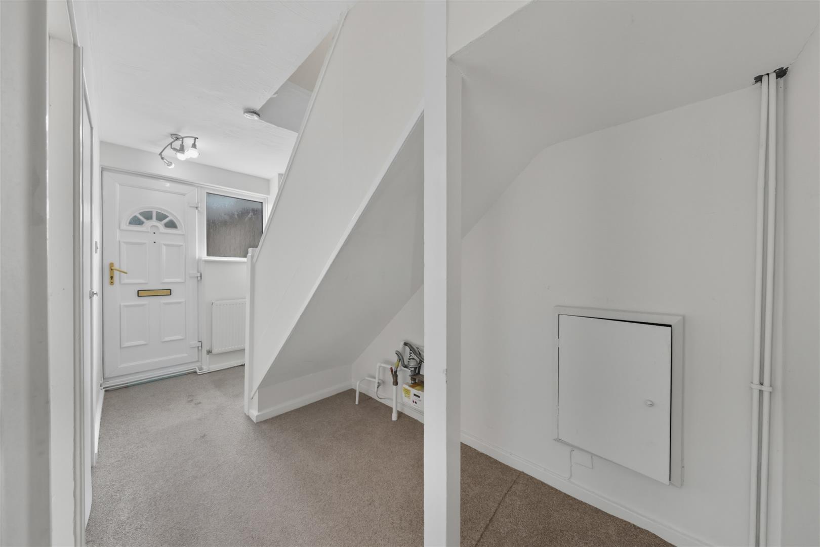 Upstairs, there are two comfortable double bedrooms and a larger-than-average single that also suits home working. The family bathroom is naturally lit and fitted with a white suite. Additional built-in storage is provided on both levels.